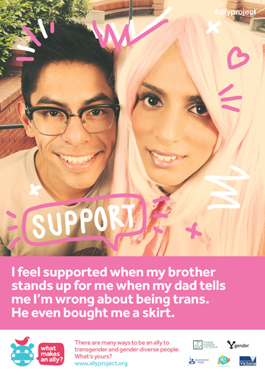 What Makes an Ally? is a transgender and gender diverse (TGD) youth project led by Transgender Victoria and YGender. The project ran throughout 2014 and was funded by the Healthy Equal Youth grants through the Victorian State Government.